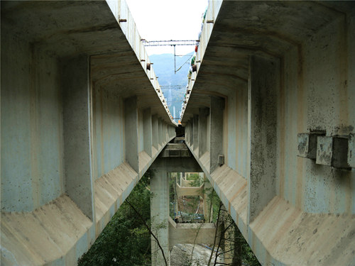 據(jù)中鐵一局鋪架項(xiàng)目負(fù)責(zé)人介紹,由于設(shè)計(jì)原因,該橋5孔T梁架設(shè)完畢后,新線(xiàn)路橋梁與老渝懷線(xiàn)線(xiàn)間距過(guò)近,不滿(mǎn)足安全行車(chē)規(guī)定,故需將重達(dá)142噸的橋梁拆除并重新滑移至17.5至80厘米不等的安全位置,工期節(jié)點(diǎn)緊張,安全風(fēng)險(xiǎn)系數(shù)極大。