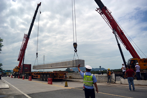 為順利完成鹽灶大橋架梁施工,項(xiàng)目部多措并舉,始終堅(jiān)持安全第一、優(yōu)質(zhì)高效的原則,確保架梁施工順利進(jìn)行。一是多次優(yōu)化施工組織方案,統(tǒng)籌規(guī)劃,詳細(xì)制定施工計(jì)劃,責(zé)任到人;二是施工現(xiàn)場(chǎng)連續(xù)作業(yè),確保架梁按時(shí)完成;三是為確保人、車通行安全,項(xiàng)目部與交警協(xié)商,由交警在現(xiàn)場(chǎng)進(jìn)行交通疏導(dǎo)。