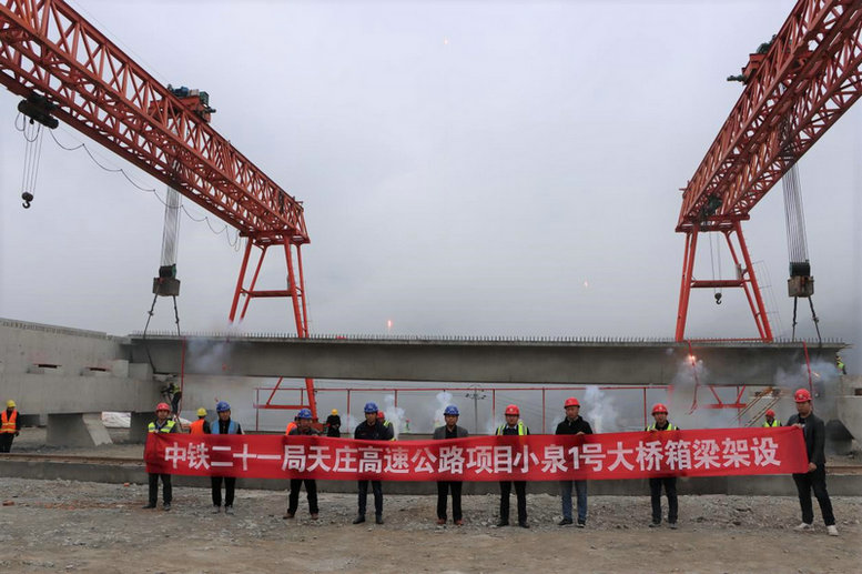 3月18日上午,中鐵二十一局四公司天莊高速公路項目小泉1號大橋首榀30米裝配式預(yù)應(yīng)力混凝土箱梁架設(shè)順利完成,標(biāo)志著箱梁架設(shè)工程正式拉開序幕,為天莊高速項目如期建成奠定了堅實基礎(chǔ)。
