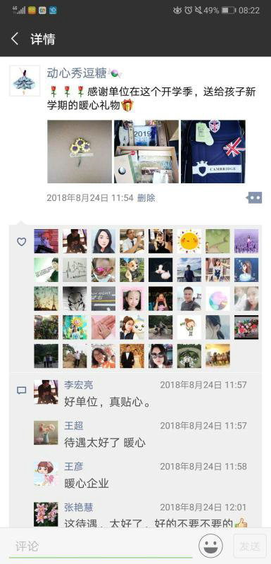 “感謝單位在這個(gè)開學(xué)季,送給孩子新學(xué)期的暖心禮物”,“背著我們單位工會(huì)送的開學(xué)大禮包上學(xué)去啦!寶寶心情美美的!媽媽心里暖暖的!”這兩天,中國鐵建大橋局建筑公司的職工們紛紛在朋友圈內(nèi)“秀”起了公司為孩子們準(zhǔn)備的“開學(xué)季大禮包”,瞬間感受到了“爆棚”的獲得感。