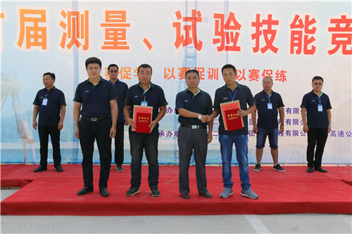 比賽中,每位參賽選手都將自己在平時積累下來的技術(shù)知識運用到了實處,展現(xiàn)了積極應(yīng)對、嫻熟操作的優(yōu)良素質(zhì)以及賽友誼、賽風格、賽技能的精神風貌。經(jīng)過激烈的角逐,安慈高速公路項目部技術(shù)主管李健獲得測量組一等獎;黔張常項目部測量隊長孟燦獲得測量組二等獎;昌贛項目部測量副隊長潘官忠獲得測量組三等獎;昌贛項目試驗員湯文獲得試驗組一等獎;銀西高鐵項目試驗員姜攀獲得試驗組二等獎,安慈高速項目部檢測員高世常獲得試驗組三等獎,對以上獲得獎勵的同志頒發(fā)榮譽證書及獎金。