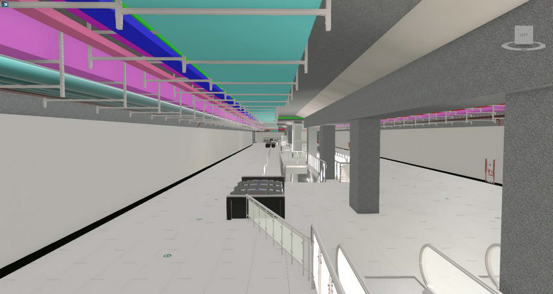 圖一、成都地鐵5號線市一醫(yī)院站站廳層風水電安裝BIM模型圖
