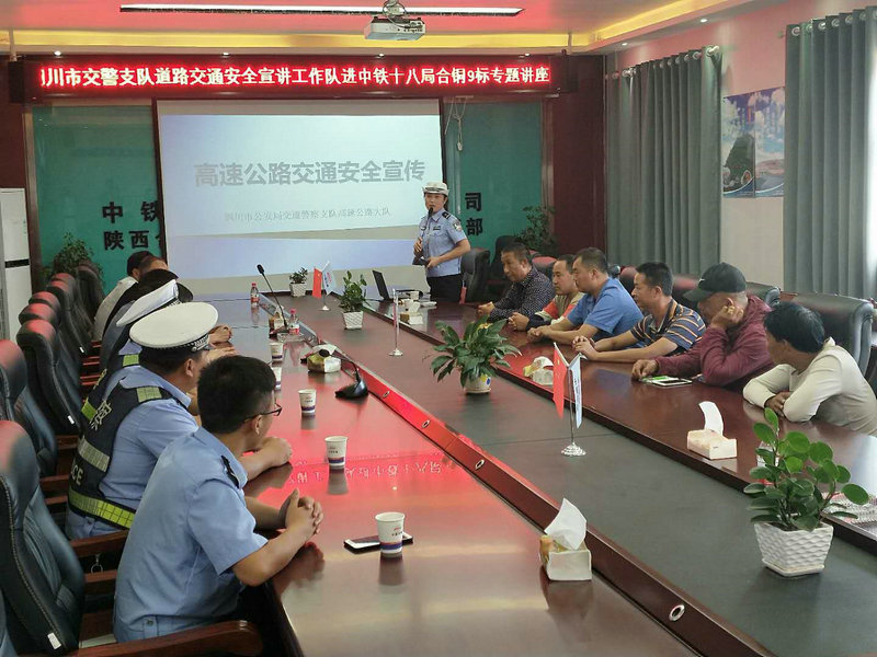 會(huì)議現(xiàn)場(chǎng) 2018年9月6日項(xiàng)目部邀請(qǐng)銅川市交警支隊(duì)宣講工作隊(duì)開展了道路交通安全講座,進(jìn)一步提高項(xiàng)目部司機(jī)文明交通安全出行意識(shí),預(yù)防和減少交通事故的發(fā)生,達(dá)成道路施工安全和交通管理雙保障。