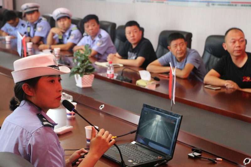 在講座上,民警主要通過PPT演示、播放事故警示視頻、發(fā)放宣傳材料宣傳講解常見交通違法行為的危害,施工現(xiàn)場(chǎng)工作要求,道路施工安全保證措施,高速公路安全行車常識(shí)。講解員采用以案說法,向駕駛員重點(diǎn)講解了超速、超員、疲勞駕駛、酒駕毒駕、闖燈越線、隨意變道等突出交通違法行為的危害,提醒駕駛?cè)藝?yán)格遵守交通法規(guī),安全謹(jǐn)慎駕駛。整個(gè)講座通過回放事故動(dòng)圖和視頻,生動(dòng)形象的展現(xiàn)交通事故帶來的嚴(yán)重危害,給在場(chǎng)培訓(xùn)的司機(jī)帶來了極大震撼,敲響了長鳴警鐘。