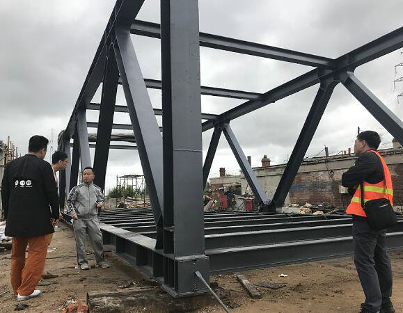 目前齊富項(xiàng)目部K1+289.7公里人行天橋已進(jìn)入后半段施工階段,鋼桁梁也運(yùn)至施工現(xiàn)場(chǎng)附近的鋼筋場(chǎng)地,電焊工也在按部就班的進(jìn)行上懸桿及下懸桿的焊接工作,項(xiàng)目經(jīng)理李勝臣、項(xiàng)目副經(jīng)理孫喜剛、房建工區(qū)負(fù)責(zé)人張勇及公司實(shí)驗(yàn)室人員在鋼筋場(chǎng)地查看鋼桁梁的焊接情況,同時(shí)在現(xiàn)場(chǎng)研究下一步鋼桁梁架設(shè)施工安排。另外人行天橋的引橋部分,施工工人正在安裝安全欄桿,雖然天氣不佳,但是施工現(xiàn)場(chǎng)的熱情依然高漲。