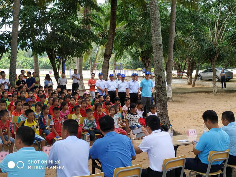 2018年6月28日,中交海投公司組織的愛心助學(xué)活動中,張輝代表村村通項目部向萬車小學(xué)捐助價值10100元的助學(xué)用品共138份,有學(xué)生手表、書包、學(xué)習(xí)文具等。在萬車小學(xué)的簡易操場上,張輝看著孩子們稚嫩的臉龐,心里充滿慰藉,他對項目部的扶貧和慈善作為感到自豪,也為自己作為村村通項目現(xiàn)場負(fù)責(zé)人而自勵,決心在工程建設(shè)過程中,把扶貧和慈善堅持下去。