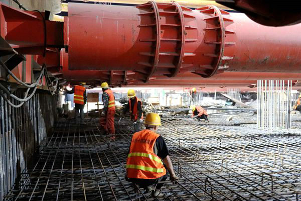 9月18日晚上9時(shí)許,我在汽車(chē)公園站,目睹施工現(xiàn)場(chǎng)人來(lái)人往,機(jī)聲轟鳴,鋼筋場(chǎng)的員工有的在下料,有的在加工綁扎鋼筋籠的開(kāi)口套,吊車(chē)在倒運(yùn)材料、塔吊在為基坑里面的員工吊裝材料,基坑里面的員工在綁扎鋼筋籠、立模板,整個(gè)施工現(xiàn)場(chǎng)環(huán)環(huán)相扣、緊張有序、忙而不亂。據(jù)來(lái)自江西的王師傅介紹,他平均一天能夠加工開(kāi)口套1500多個(gè)。