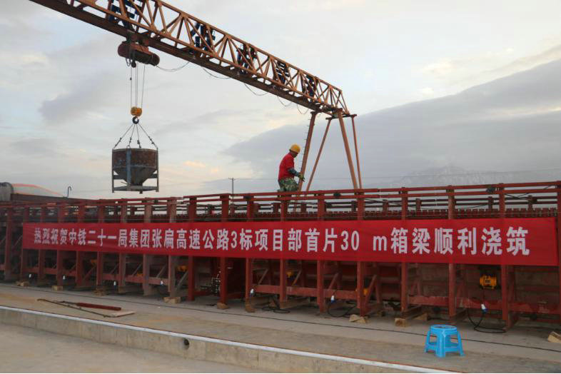 9月19日下午19:08分,中鐵二十一局四公司張扁高速公路項(xiàng)目部洪水河大橋30米箱梁預(yù)制施工現(xiàn)場(chǎng)鞭炮齊鳴、禮花齊放,歡慶第一片箱梁預(yù)制成功,這標(biāo)志著整體施工進(jìn)度取得重大進(jìn)展,同時(shí)為后續(xù)箱梁預(yù)制積累了豐富的實(shí)戰(zhàn)經(jīng)驗(yàn)。
