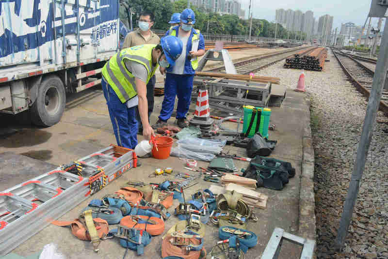 8月2日7時(shí)40分,30多名作業(yè)人員在項(xiàng)目部樓下整齊列隊(duì),有序上車。此次施工任務(wù)是將11面新設(shè)備柜利用軌道車從西塱車輛段運(yùn)送到楊箕站B所的I段,再將楊箕站B所II段12面舊設(shè)備柜裝車返回西塱車輛段次日交付運(yùn)營(yíng)。