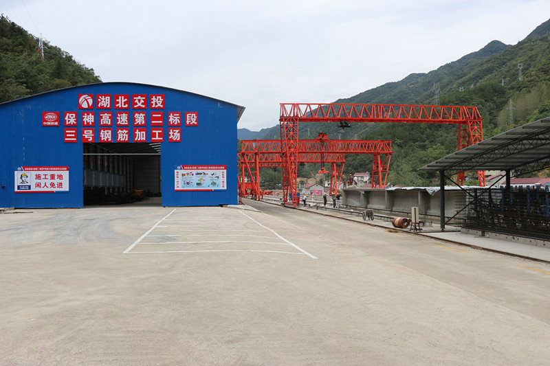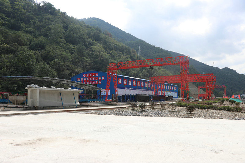 在“地?zé)o三尺平”的湖北省??悼h,要從施工線上找到一塊可以制梁、存粱的地段實(shí)屬不易。項(xiàng)目部對(duì)梁場(chǎng)選址高度重視,不斷優(yōu)化選址方案,綜合考慮地形、運(yùn)輸、征拆等多方面因素,最終確定在k7+710-k7+960主線路基上進(jìn)行建設(shè),雖然此段路基南側(cè)靠山,北側(cè)臨水(河道)需要架橋,施工繁瑣,但其地形較為平坦,利于鋼筋加工棚等配套設(shè)施搭建,且緊鄰項(xiàng)目橋梁密集地(高碑3.4.5號(hào)橋)并與實(shí)驗(yàn)室、拌合站毗鄰,不僅方便混凝土的輸送,在架梁時(shí)還可以縮短運(yùn)梁距離,大大提高施工效率。