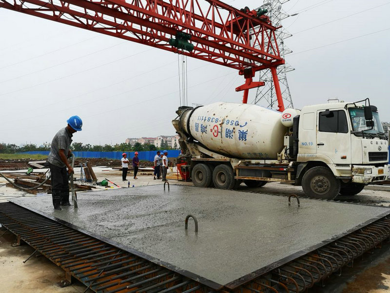 巢湖大橋全橋橋面板數(shù)量共計1258塊,共需混凝土方量為7982立方米,總重約21000余噸。首片橋面板,在澆筑前制定了詳細的技術方案,項目部安全、技術、質量、物資等部門提前給施工班組作業(yè)人員進行培訓交底會,混凝土澆筑全程盯控,保質保量保進度完成澆筑工作。