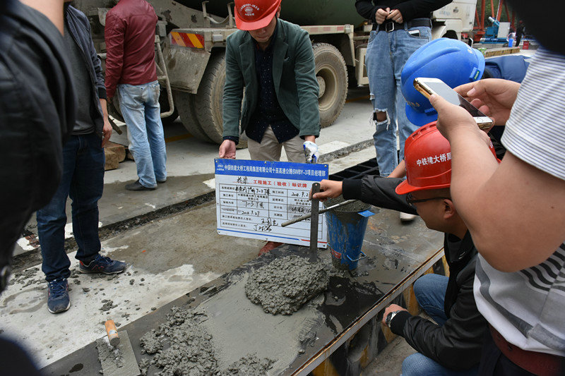 澆筑前一夜,現(xiàn)場技術(shù)員和班組人員仍加班加點,挑燈夜戰(zhàn),認真執(zhí)行首件制。模板試拼、鋼筋綁扎及波紋管定位、模板拼裝等工藝嚴(yán)格按照項目公司、總監(jiān)辦、駐地辦要求進行檢驗、驗收,確保各項參數(shù)滿足技術(shù)要求和設(shè)計規(guī)范,這也為第一片T梁的成功澆筑奠定了堅實基礎(chǔ)。澆筑前,及時報驗監(jiān)理,并組織現(xiàn)場技術(shù)交底。澆筑過程中,項目部、工區(qū)全員參加,全程控制,確保首片T梁達到“內(nèi)實外美、首件示范”的效果。項目公司、總監(jiān)辦、駐地辦均出席首片T梁預(yù)制現(xiàn)場。
