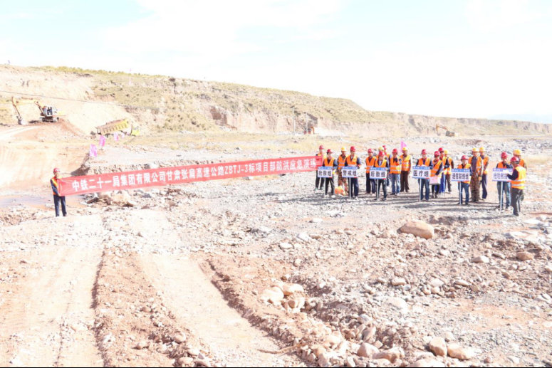 為切實提高防汛應(yīng)急管理水平,9月29日下午,中鐵二十一局四公司張扁高速公路項目部在洪水河大橋舉行了防洪應(yīng)急演練。本次演練項目部還邀請了監(jiān)理辦安全專監(jiān)馬玉中觀摩。