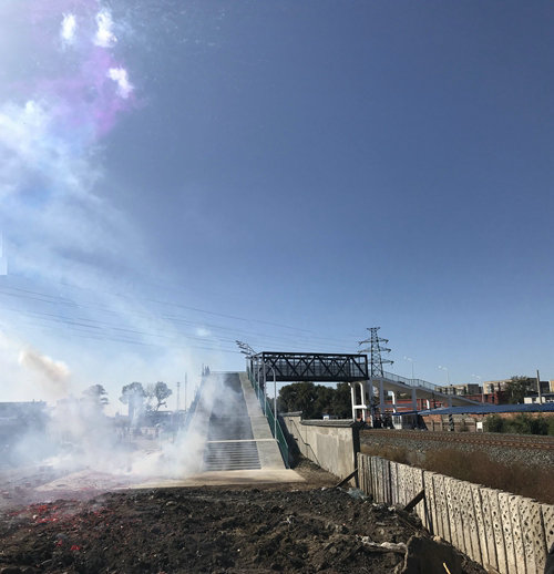 隨著震耳欲聾的鞭炮聲,中鐵二十三局二公司齊北線齊富增建二線工程項目經(jīng)理部承建的齊北線K1+289.7公里人行天橋正式開通了,隨著這一座人行天橋的開通,可進一步緩解越過鐵路道口時的擁堵情況,改善道路通行條件。