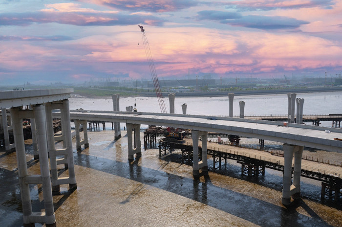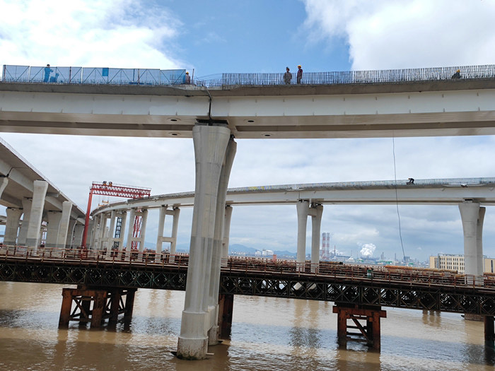 中鐵十五局加快杭甬項目濱?;ネ蛎娣雷沧o欄施工獻禮亞運會