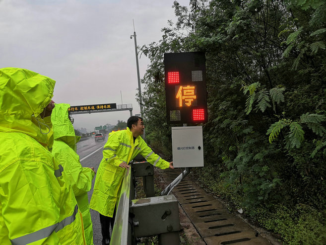 該監(jiān)測預(yù)警系統(tǒng)由照明裝置、具有語音播報功能的文字型爆閃警示裝置、微光攝像機及橋梁簡易感知報警系統(tǒng)組成。當某路段或橋梁突發(fā)異常時,微光攝像機會及時捕捉,并將結(jié)果傳導至系統(tǒng)終端所屬的監(jiān)控中心,監(jiān)控中心通過高位監(jiān)控視頻確認災(zāi)情,立即向高德、百度等導航系統(tǒng)推送災(zāi)害信息更新路況,同步聯(lián)動監(jiān)測預(yù)警系統(tǒng)激活沿途電子顯示屏、爆閃燈和高音喇叭等“聲、光、電”警示裝置,提醒過往車輛繞道避險。該監(jiān)測預(yù)警系統(tǒng)的安裝,確保了渝長復(fù)線高速在突發(fā)險情時能第一時間發(fā)現(xiàn)并及時向往來司乘進行提醒、告知,最大限度的降低了險情帶來的危害,同時給道路養(yǎng)護救援單位爭取了時間。