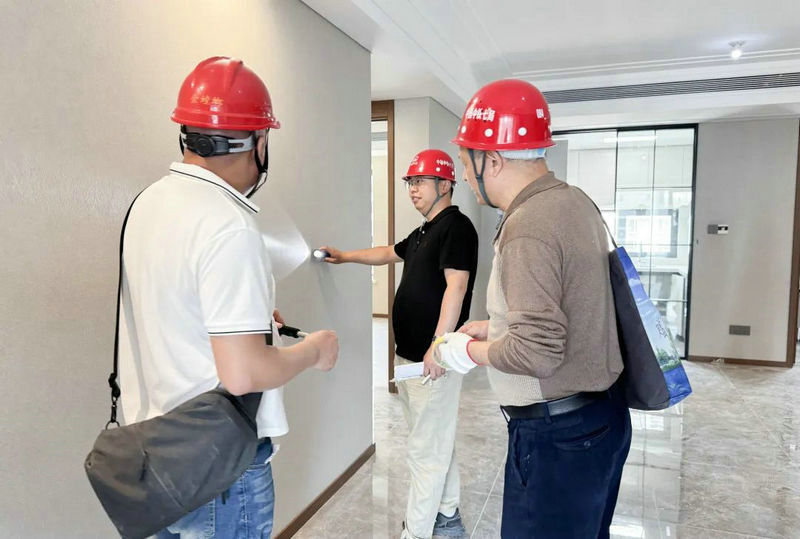 檢查過(guò)程中,專家組首先聽取了項(xiàng)目各參建單位關(guān)于分戶驗(yàn)收工作的專題匯報(bào),詳細(xì)了解了驗(yàn)收流程、標(biāo)準(zhǔn)執(zhí)行及整改落實(shí)情況。隨后,專家組深入施工現(xiàn)場(chǎng),實(shí)地抽查了多個(gè)住宅單元的墻體平整度、門窗安裝牢固度、觀感質(zhì)量等關(guān)鍵指標(biāo),并對(duì)驗(yàn)收記錄、實(shí)測(cè)數(shù)據(jù)等資料進(jìn)行逐項(xiàng)比對(duì)。針對(duì)發(fā)現(xiàn)的個(gè)別吊頂細(xì)微裂縫、門窗磕碰劃痕等問(wèn)題,專家組現(xiàn)場(chǎng)提出整改意見,確保“一戶一驗(yàn)”落到實(shí)處。經(jīng)綜合評(píng)估,專家組認(rèn)為,項(xiàng)目二期工程整體質(zhì)量管控成效顯著,分戶驗(yàn)收工作程序規(guī)范、資料完整,墻體、門窗等主體結(jié)構(gòu)質(zhì)量符合國(guó)家及地方標(biāo)準(zhǔn),觀感質(zhì)量達(dá)到行業(yè)較高水平。同時(shí),專家組對(duì)項(xiàng)目團(tuán)隊(duì)在驗(yàn)收過(guò)程中展現(xiàn)的嚴(yán)謹(jǐn)態(tài)度和專業(yè)能力給予充分肯定,并強(qiáng)調(diào)要繼續(xù)堅(jiān)持“以客戶為中心”的服務(wù)理念,將質(zhì)量管控貫穿于工程建設(shè)的全生命周期。