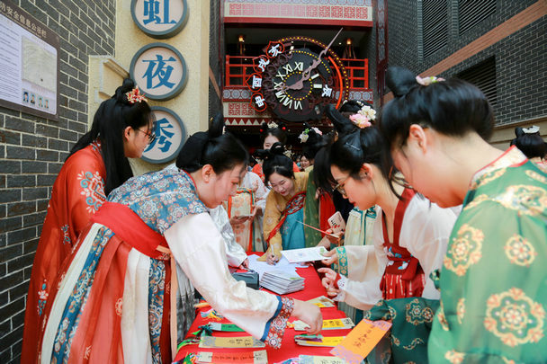 活動(dòng)以“弘揚(yáng)中華優(yōu)秀傳統(tǒng)文化”為主線,創(chuàng)新采用沉浸式古風(fēng)體驗(yàn)形式,將中原文化與現(xiàn)代交友需求深度融合。活動(dòng)伊始,青年們身著精心設(shè)計(jì)的漢服,手持“通關(guān)文牒”,在“筆墨丹青墻”揮毫留名,體驗(yàn)古代文人雅士的禮儀風(fēng)范。通過(guò)“飛花令”隨機(jī)組隊(duì)環(huán)節(jié),青年們迅速打破陌生感,在才藝展示、趣味紅娘說(shuō)媒中增進(jìn)了解。一位參與活動(dòng)的青年員工表示:“這種形式既新穎又富有文化底蘊(yùn),讓我們?cè)谳p松的氛圍中自然交流,避免了傳統(tǒng)相親的尷尬。”