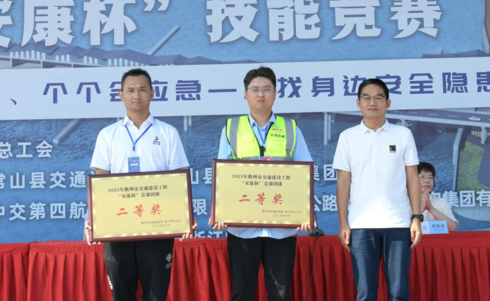 經(jīng)過專家組綜合評比,團(tuán)體一二三名和個(gè)人一二三名全部產(chǎn)生,二公司獲得團(tuán)體第二名。衢州市交通局、總工會(huì),常山縣有關(guān)領(lǐng)導(dǎo)參加。此次最大的亮點(diǎn)是懸掛、張貼在現(xiàn)場的各種安全宣傳牌和安全標(biāo)語、工程展示牌,并且15個(gè)參賽小組選手頭上戴的安全帽和身上穿著的反光背心,均印有“中國鐵建標(biāo)志”和“中鐵十五局”字樣,彰顯了企業(yè)的籌備能力和深邃的企業(yè)文化與良好的企業(yè)形象。