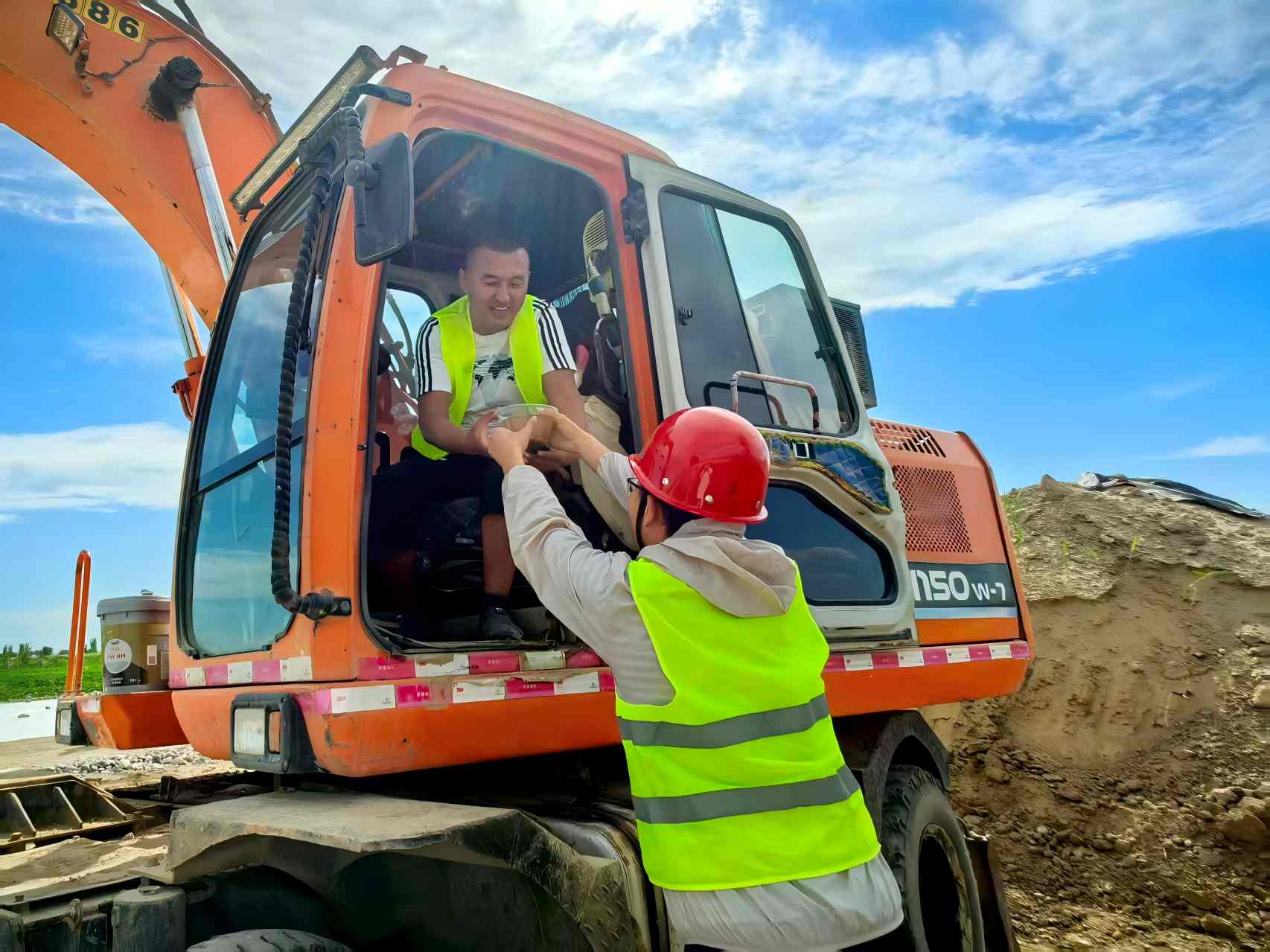 該項目部前往施工現(xiàn)場為各施工隊伍發(fā)放了西瓜、綠豆湯、礦泉水、藿香正氣液等夏季防暑降溫物品,對高溫天氣下辛勞工作的一線工人表達了親切的慰問和衷心的感謝,并提醒工友們在高溫天氣下注意做好防暑降溫措施。拿到防暑物資的工友們紛紛表示:“項目部送的清涼用品,看著貼心,用著暖心!這份關(guān)懷極大鼓舞了我們,讓大家心里暖暖的,也給了我們戰(zhàn)勝高溫酷暑的信心,再熱的天干活也更有勁兒!”