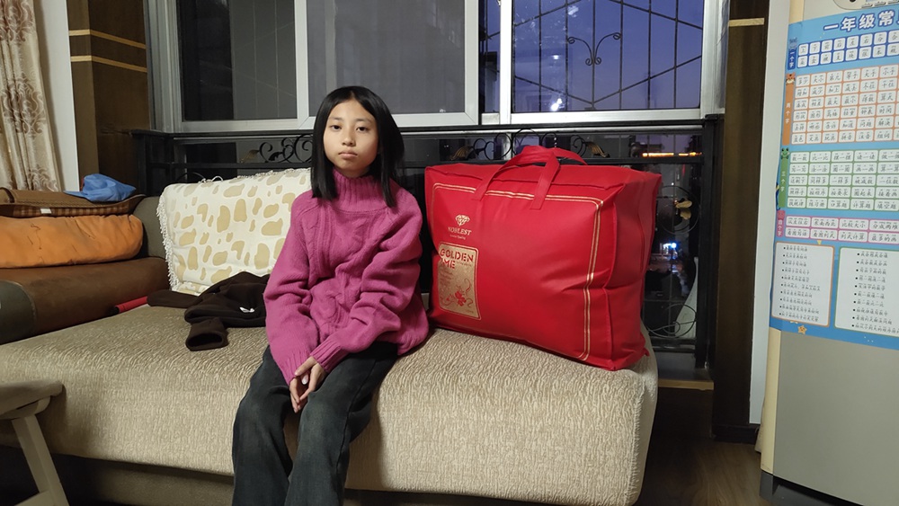 圖為2024年春節(jié)前楊宇濛收到十一師“愛心媽媽”們慰問的毛衣,棉被