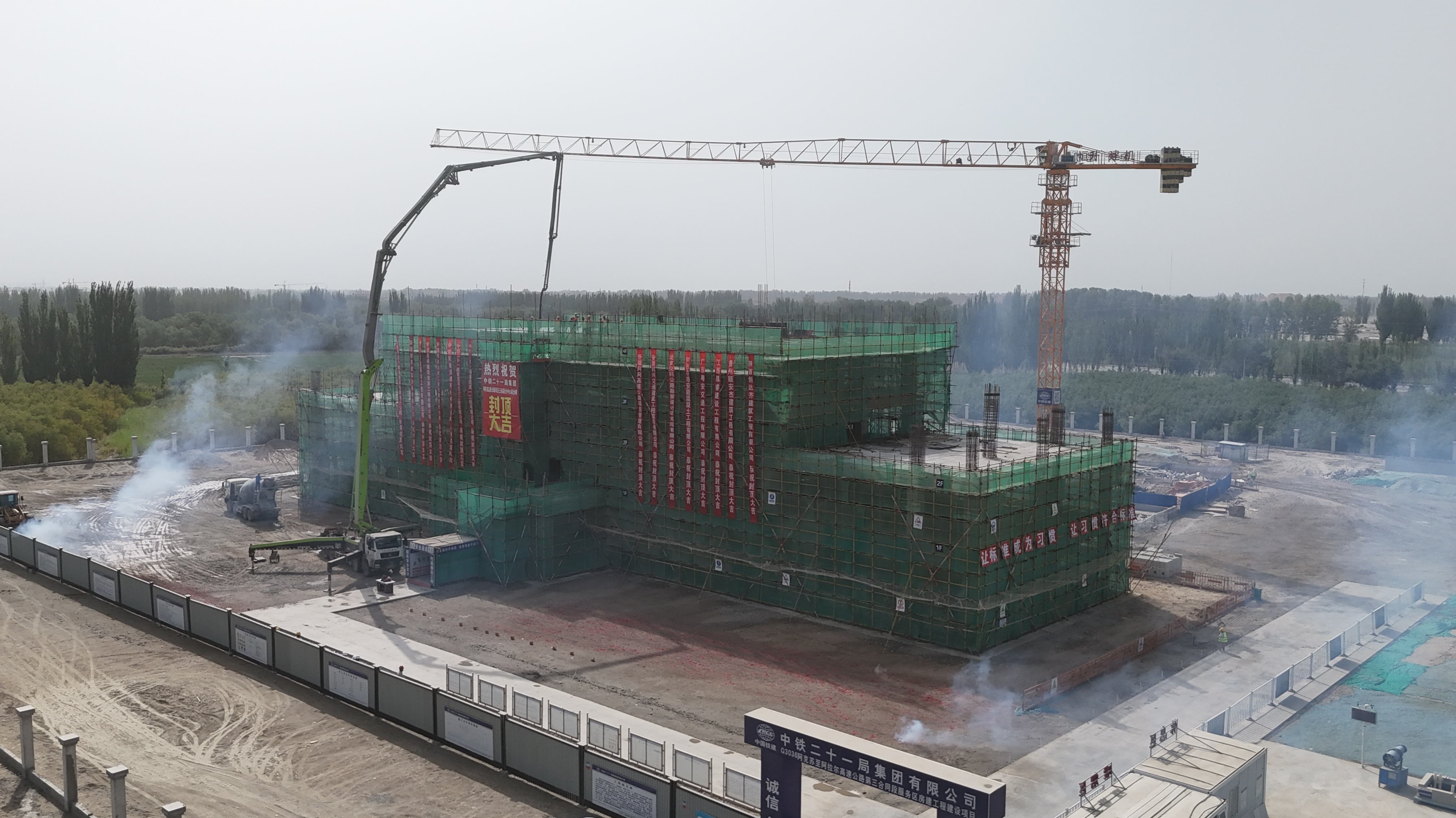 7月30日,由中鐵二十一局承建的阿阿高速房建工程監(jiān)控通信分中心綜合樓主體結(jié)構(gòu)順利完成封頂。