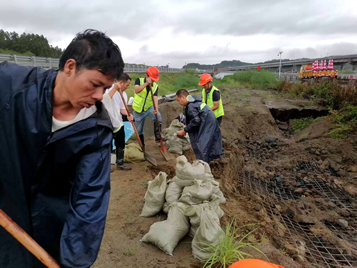 8月2日0時13分,“福建氣象”發(fā)布——“白鹿”即將生成,福建將迎雷雨、大雨、暴雨!福建分公司主要領導連夜部署安排,分管領導蹲住一線,安全環(huán)保部抽調“精兵強將”加強現(xiàn)場管理。漳詔項目主動與駐地氣象部門建立聯(lián)系,及時掌握區(qū)域最新氣象動態(tài);進行整體動員,建立加強值班巡查制度,足量儲備各類應急搶險物資;使用大型機械設備對邊坡進行反壓加固,增加沿線照明設施和警示標志;全線開展隱患排查,加強施工作業(yè)點巡查,在重點部位建立監(jiān)測手段,確保萬全準備、超前準備。