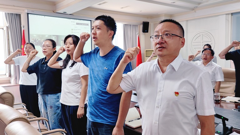 活動伊始,全體黨員面向鮮紅黨旗,高舉右手,重溫入黨誓詞。誓言錚錚,響徹現(xiàn)場,覺醒黨員同志們?nèi)朦h時的初心與使命,堅定為黨的事業(yè)不懈奮斗的決心。