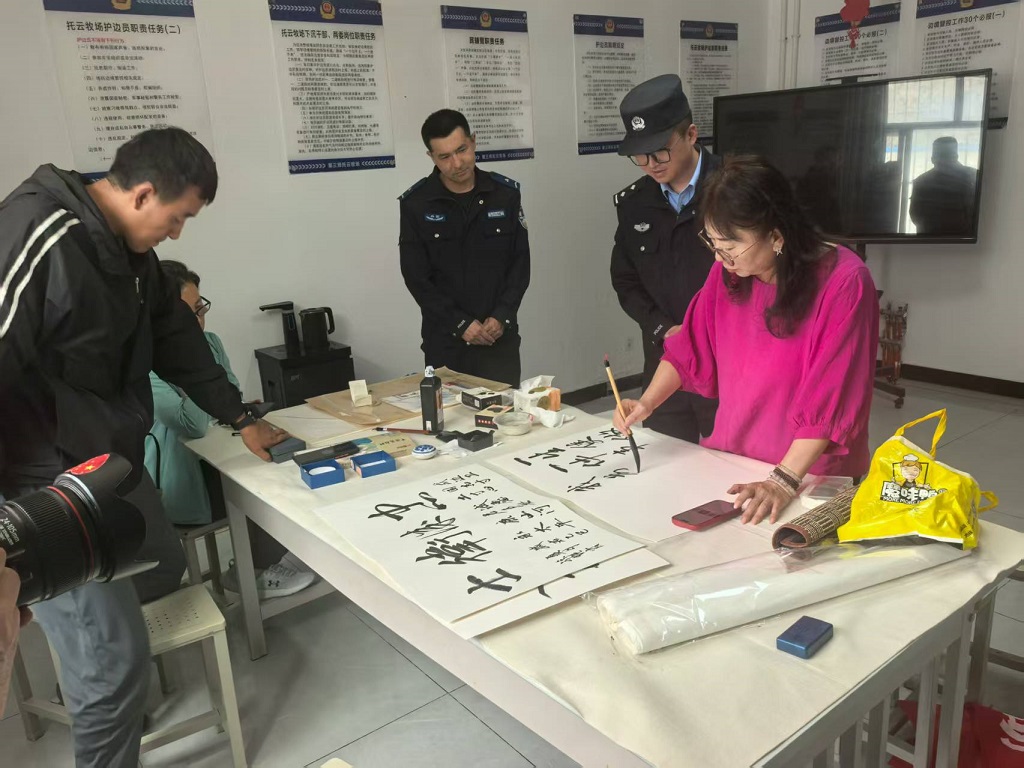 臨別時,藝術家們根據(jù)項目人員的工作狀態(tài)與精神追求,精心創(chuàng)作書畫作品相贈。其中,書法作品《長風破浪會有時,直掛云帆濟滄?!饭P力遒勁,既呼應了項目團隊克服山區(qū)施工難題的奮斗歷程,更激勵大家以昂揚斗志推進工程建設;贈送的水墨山水圖則以托云牧場的壯麗風光為藍本,遠山含黛、近水含情,寓意建設者們在艱苦環(huán)境中不忘守護邊疆山水的初心,在忙碌之余能從自然之美中汲取力量。