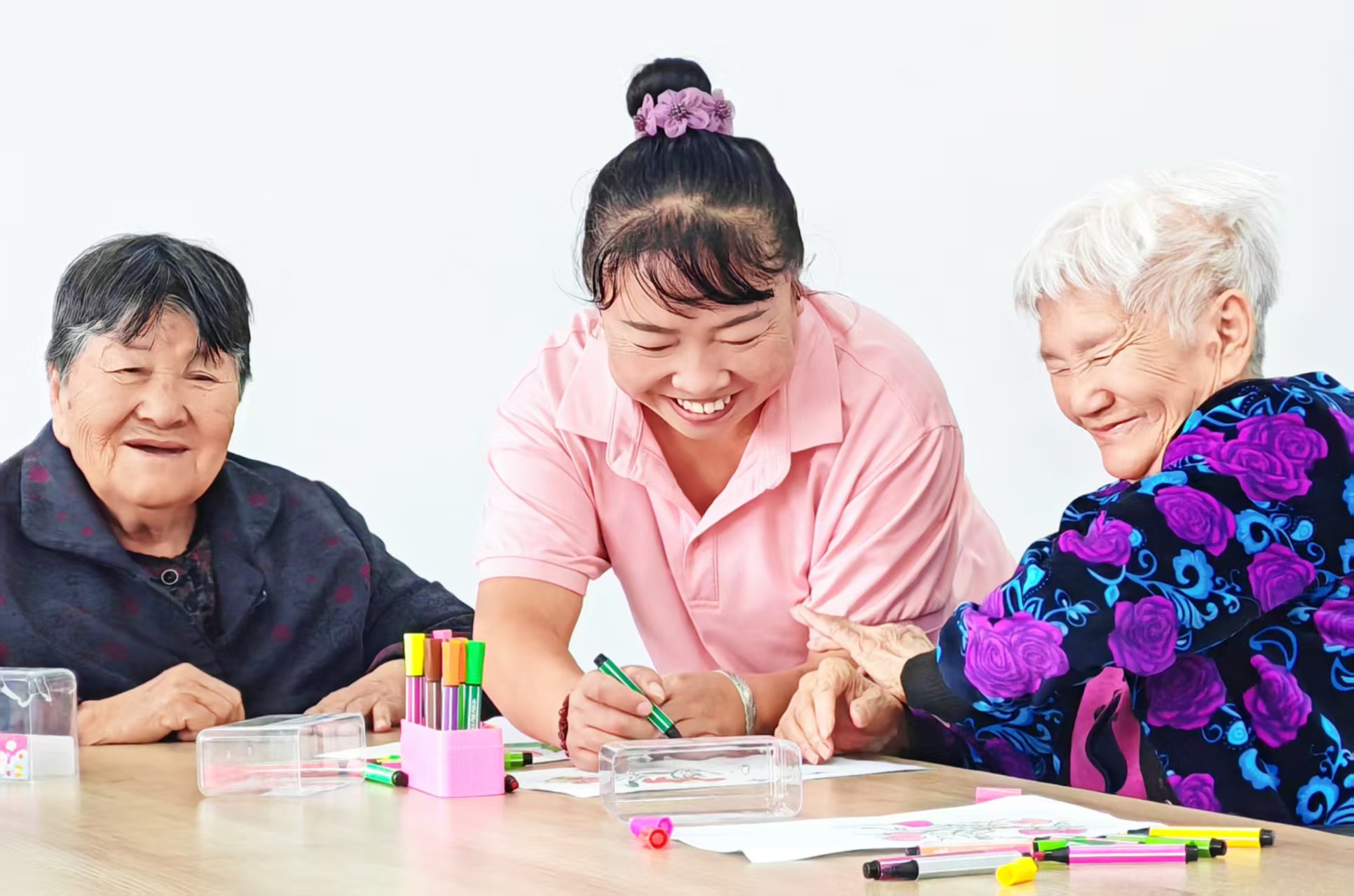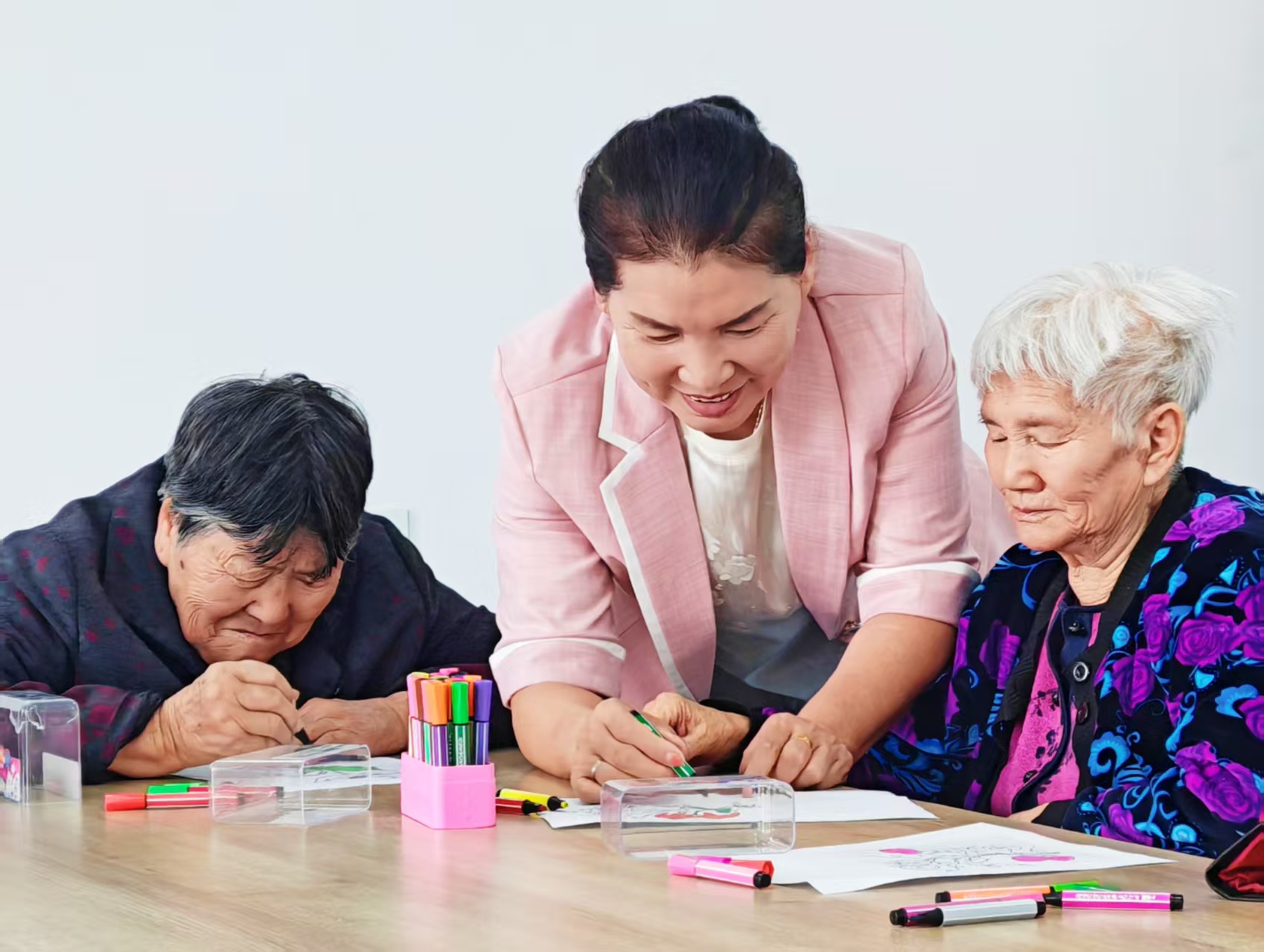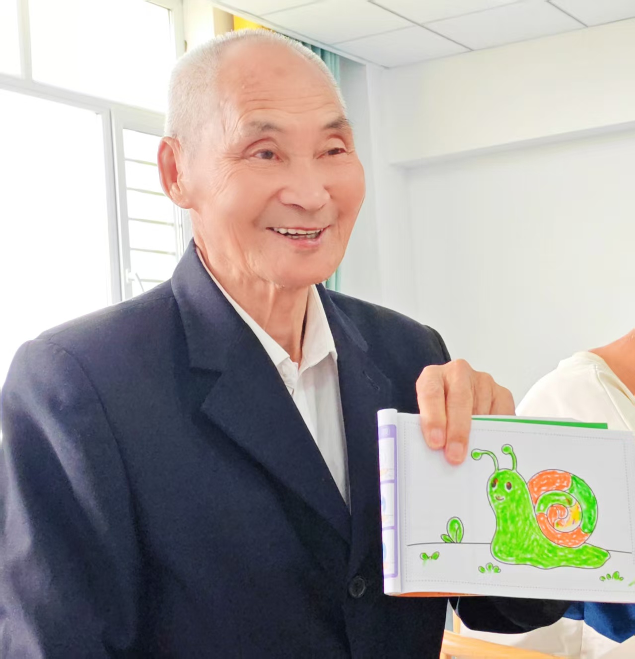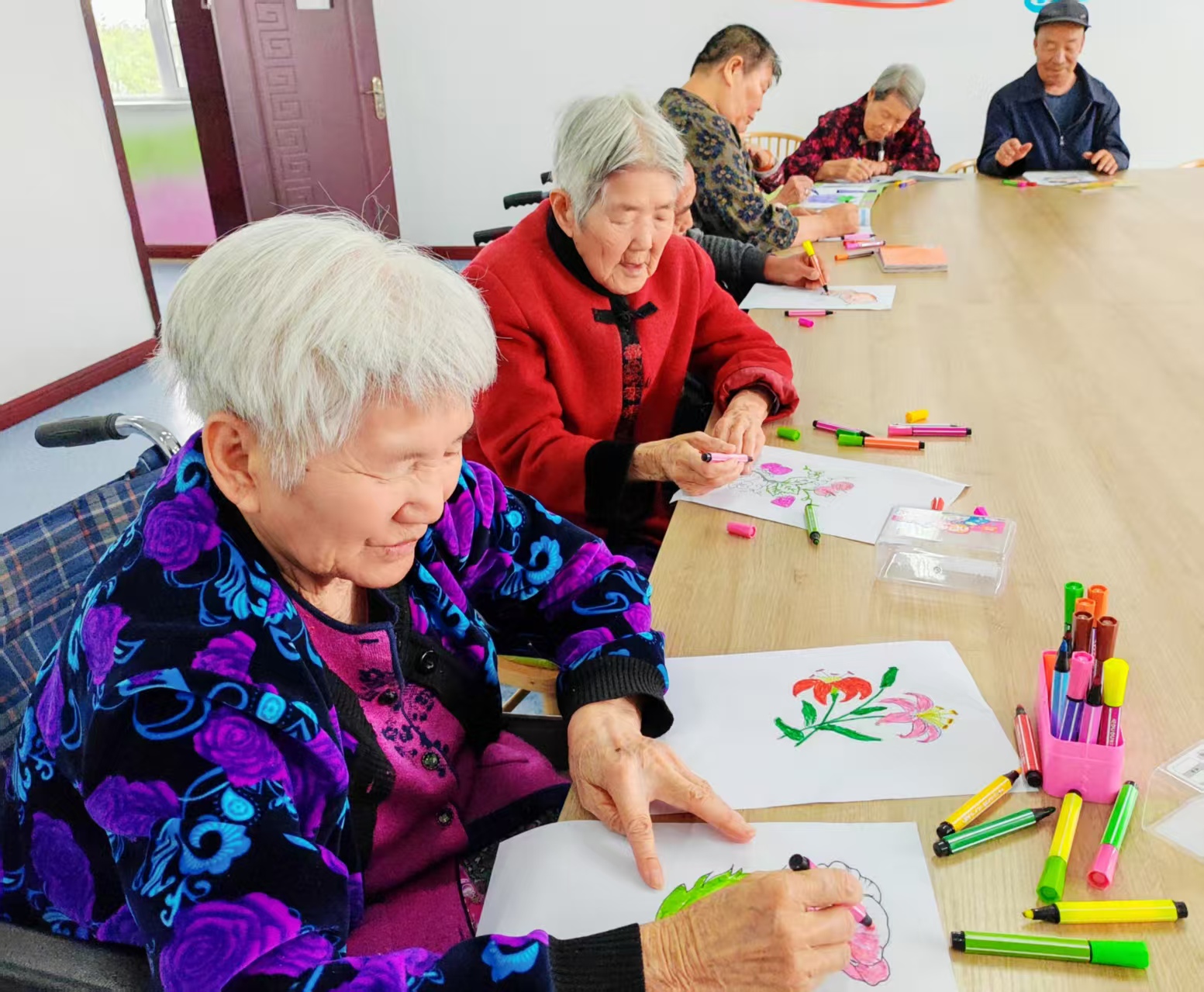 走進(jìn)手工美術(shù)室,六師奇臺(tái)110社區(qū)吾家樂寶養(yǎng)老院自理、半自理老人,興趣極濃,興致高漲,在院長(zhǎng)史云智與護(hù)理員們的輔導(dǎo)下,早早地來到手工美術(shù)室,用彩筆涂染著一幅幅卡通畫片,用自己“好的心情”與“不老之心”描繪著自己童年的記憶。六師奇臺(tái)110社區(qū)吾家樂寶養(yǎng)老院,為了增強(qiáng)在院長(zhǎng)者健康活力,每周結(jié)合長(zhǎng)者們健康實(shí)際,制定出長(zhǎng)者益智活動(dòng)方案,組織在院老人積極參與,共同開展豐富多彩、老人喜聞樂見的各項(xiàng)活動(dòng)。在開展“七彩繪畫”課堂活動(dòng)中,該養(yǎng)老院的自理、辦自理老人們,用彩筆繪畫出栩栩如生的圖畫,臉上流溢出幸福甜蜜笑容。