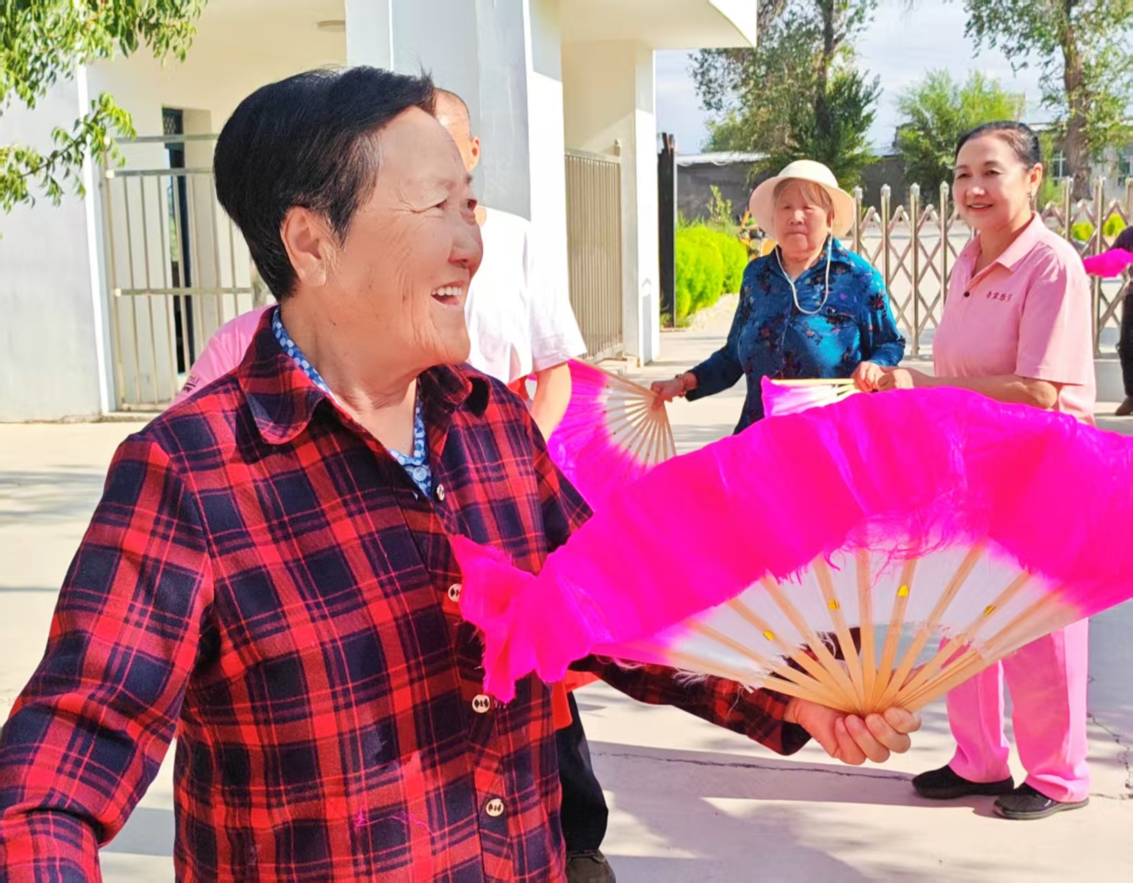 奇臺(tái)訊(通訊員:王學(xué)明 報(bào)道)8月25日下午,六師奇臺(tái)110社區(qū)吾家樂寶養(yǎng)老院內(nèi),秋高氣爽,陽光明媚。在院的爺爺、奶奶們,與員工們扭起大秧歌,揮舞紅綢扇,興高采烈,歡歌笑語,用輕盈矯健的舞步告訴在場的人們“我們不老,還很年輕”。