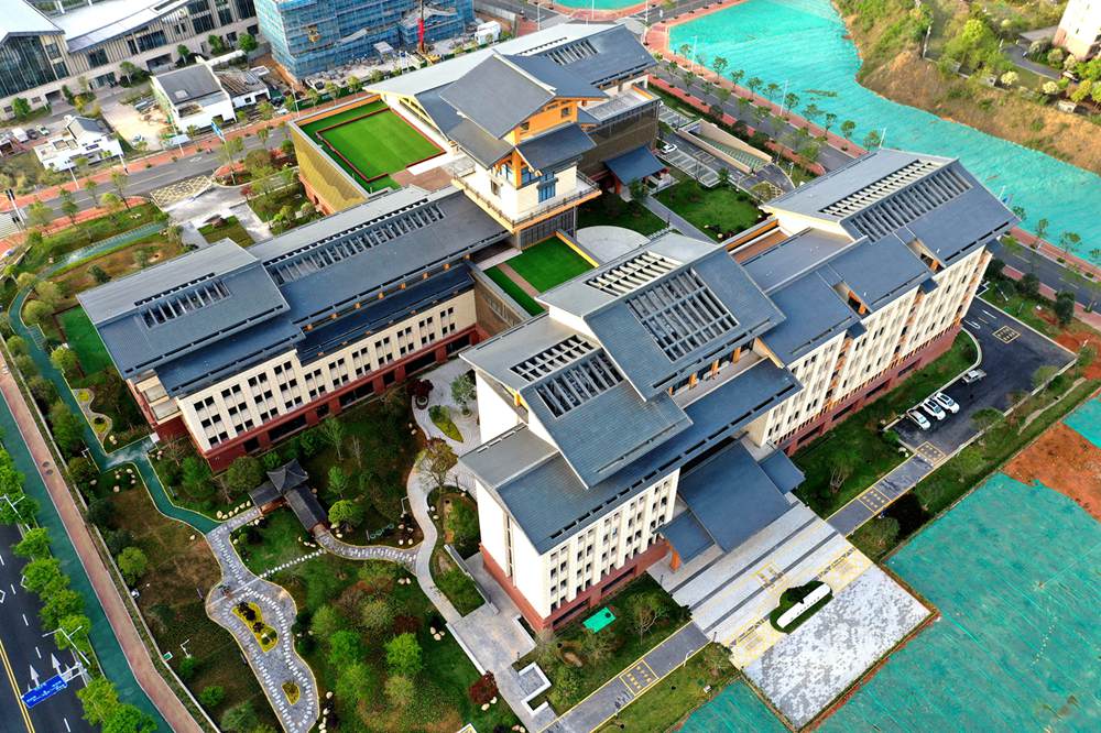 南平市老年教育文體活動中心項(xiàng)目是福建省重點(diǎn)建設(shè)項(xiàng)目,占地面積24841㎡,總建筑面積34090平方米,地上建筑面積30550平方米,地下建筑面積3540平方米,包括教學(xué)樓、三中心大樓、文體樓和配套照明、電氣、給排水、室外工程、消防及海綿城市建設(shè)等附屬設(shè)施。該項(xiàng)目具有混凝土構(gòu)件跨度大,高大支模、超高超重預(yù)應(yīng)力梁數(shù)量多,建筑造型復(fù)雜,懸挑構(gòu)件多等施工重難點(diǎn),全體參建單位和人員連續(xù)奮戰(zhàn)620日歷天建成。