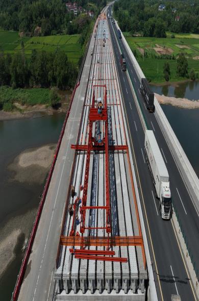 正在閱讀:滬昆B1標(biāo)項目部弋陽信江大橋大樁號T梁架設(shè)完成