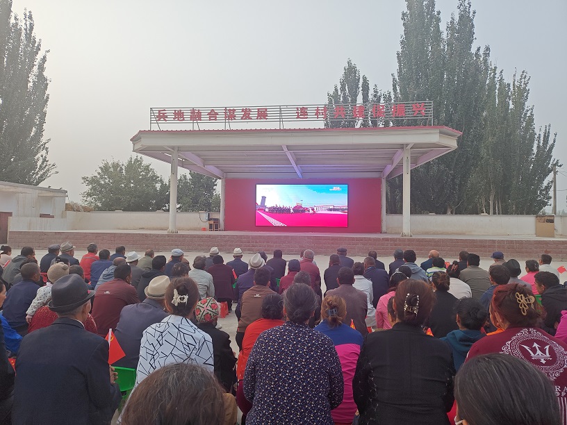 阿克陶訊(通訊員王海龍 吳軍)2025年9月3日上午,紀(jì)念中國(guó)人民抗日戰(zhàn)爭(zhēng)暨世界反法西斯戰(zhàn)爭(zhēng)勝利80周年大會(huì)在北京天安門廣場(chǎng)隆重舉行。為讓基層黨員群眾直觀感受國(guó)家強(qiáng)盛風(fēng)貌、深刻感悟抗戰(zhàn)精神,兵團(tuán)十一師、建咨集團(tuán)駐村工作隊(duì)精心組織,組織皮拉勒鄉(xiāng)拜什鐵熱克8村、依納克21村的66名黨員和237名群眾,齊聚村文化廣場(chǎng),懷著無比激動(dòng)的心情共同收看大會(huì)直播。