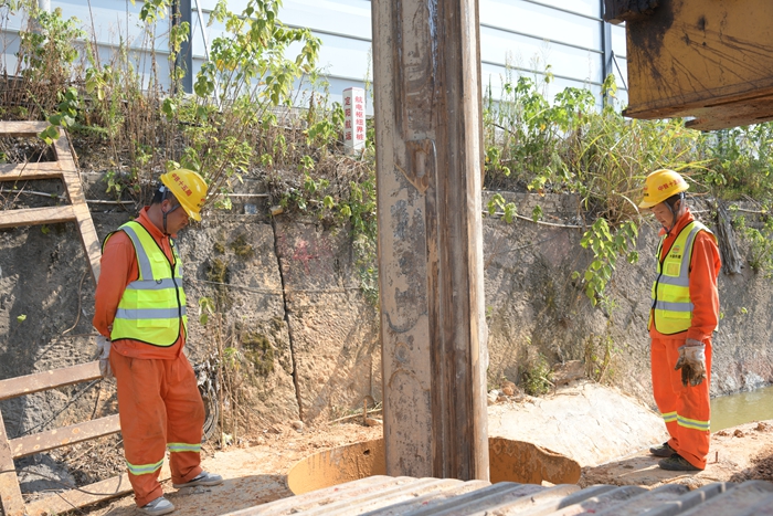 徐村大橋2024年8月11日樁基開(kāi)鉆。大橋跨越浙能天然氣、中石化成品油、西氣東輸3條管道,安全風(fēng)險(xiǎn)很高,在鉆孔、提泥時(shí)一旦碰破管道,將會(huì)造成油氣泄露大事故。為保證安全通過(guò)“危險(xiǎn)區(qū)”,項(xiàng)目部有關(guān)人員經(jīng)過(guò)現(xiàn)場(chǎng)勘察、與油氣管道單位接洽、反復(fù)研究圖紙、精確定位,并制定了科學(xué)的施工方案,掌握了主動(dòng)。同時(shí)選擇施工經(jīng)驗(yàn)豐富的樁基隊(duì)進(jìn)場(chǎng),并做好各環(huán)節(jié)技術(shù)交底、對(duì)施工人員進(jìn)行崗位技術(shù)培訓(xùn)。為了不影響舊橋安全通行,該項(xiàng)目采取安裝防護(hù)欄、禁止非施工人員入內(nèi)、懸掛安全警示標(biāo)語(yǔ)、標(biāo)牌、專人值守等措施,千方百計(jì)營(yíng)造安全的施工環(huán)境。