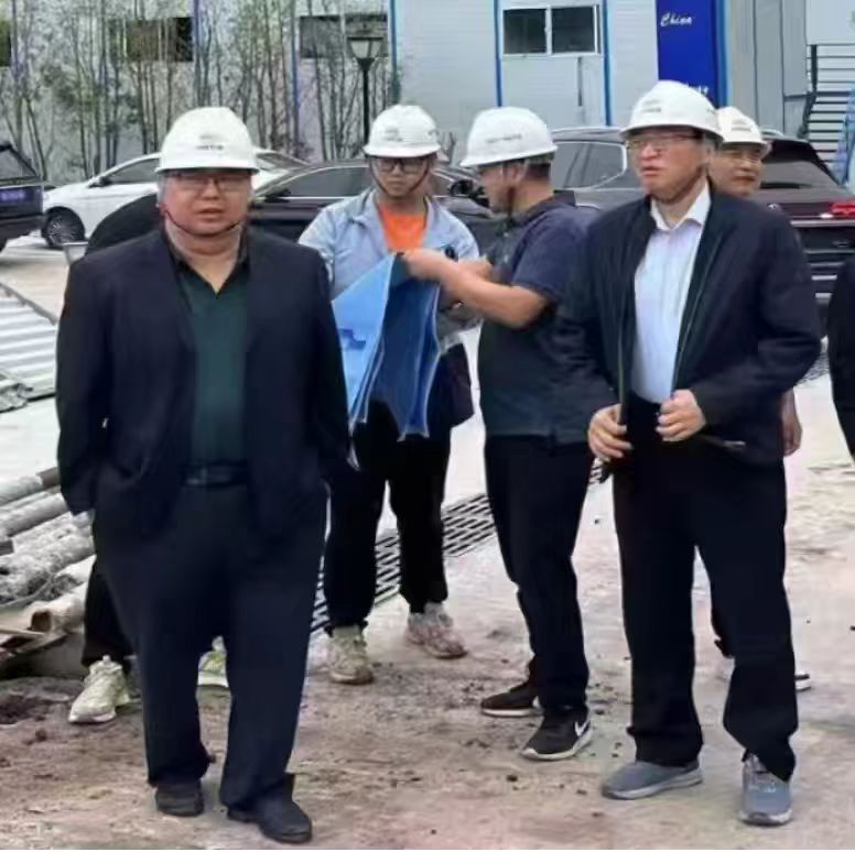 總承包部指揮長(zhǎng)李兵(左1)、黨支部書(shū)記王向平(右1)帶頭深入現(xiàn)場(chǎng)及時(shí)解決施工難題