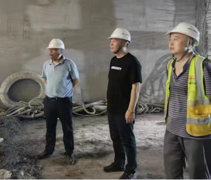 項(xiàng)目經(jīng)理趙建偉(右2)在現(xiàn)場(chǎng)巡查