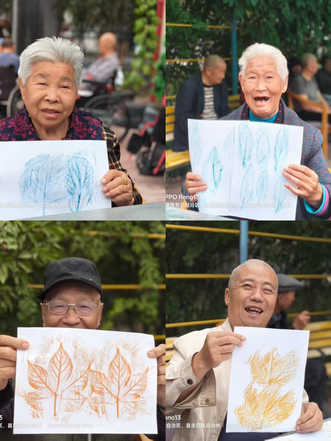 2025年 9月9日,紅旗農(nóng)場吾家樂寶養(yǎng)老院的小院里開展了一場別開生面的自然課——樹葉拓畫?;顒?dòng)現(xiàn)場,老人們在工作人員的陪伴下,開啟了一場奇妙的自然探索之旅。