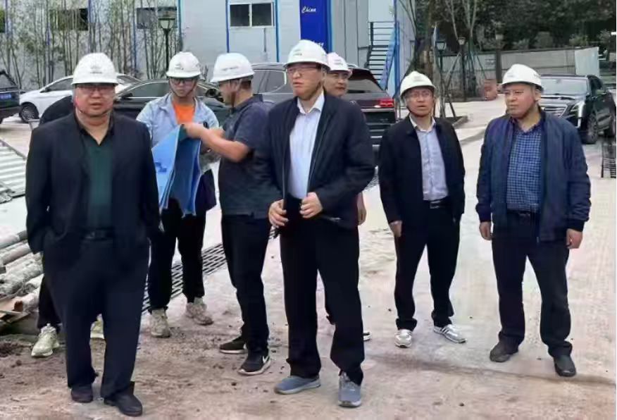 總承包部指揮長李兵(左1)、黨支部書記王向平(左2)、副指揮長李燕(右2)、工程管理部經(jīng)理鄧林義(右2)在現(xiàn)場巡查督導