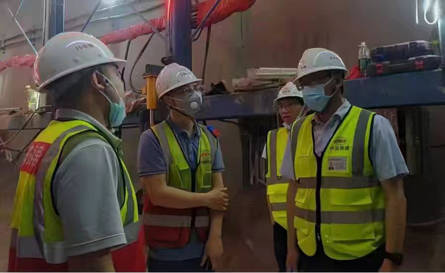 總承包部安全監(jiān)督部經(jīng)理李志鋒(左1)在現(xiàn)場安全檢查