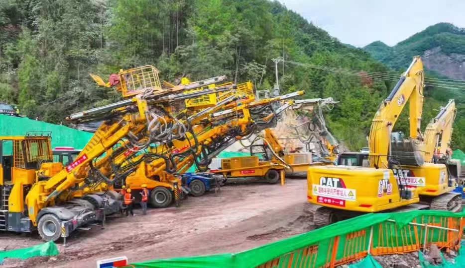 據(jù)中鐵十一局宜涪高鐵項(xiàng)目負(fù)責(zé)人張光武介紹,面對(duì)極其復(fù)雜的地質(zhì)和生態(tài)環(huán)境挑戰(zhàn),項(xiàng)目團(tuán)隊(duì)堅(jiān)持“技術(shù)先行、智能賦能、綠色施工”理念,多措并舉推進(jìn)工程建設(shè)。項(xiàng)目廣泛應(yīng)用BIM+GIS技術(shù)進(jìn)行三維可視化建模,實(shí)現(xiàn)施工方案模擬優(yōu)化與資源精準(zhǔn)配置。洞口設(shè)立智能信息化控制中心,集成人員定位、瓦斯監(jiān)測(cè)、三維可視化超前地質(zhì)預(yù)報(bào)、智能鉆爆、智能車輛調(diào)度等系統(tǒng)。智能化裝備方面。引入全電腦三臂鑿巖臺(tái)車、拱錨一體臺(tái)車、鉆錨注臺(tái)車及混凝土噴漿機(jī)等智能裝備集群,形成全流程機(jī)械化作業(yè)鏈。