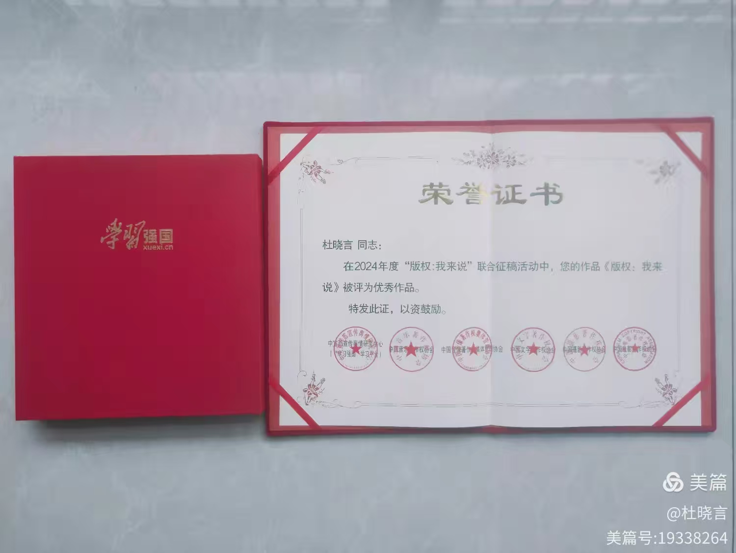 此次獲獎,不僅是對杜曉言創(chuàng)作實力的肯定,更展現(xiàn)了鄆城文藝工作者在文化傳播與版權(quán)保護領(lǐng)域的積極擔(dān)當(dāng)。據(jù)了解,包括杜曉言在內(nèi)的所有優(yōu)秀作品創(chuàng)作者,將在近期收到由主辦方統(tǒng)一寄送的榮譽證書與紀念品,以表彰其在版權(quán)宣傳普及工作中的積極貢獻。