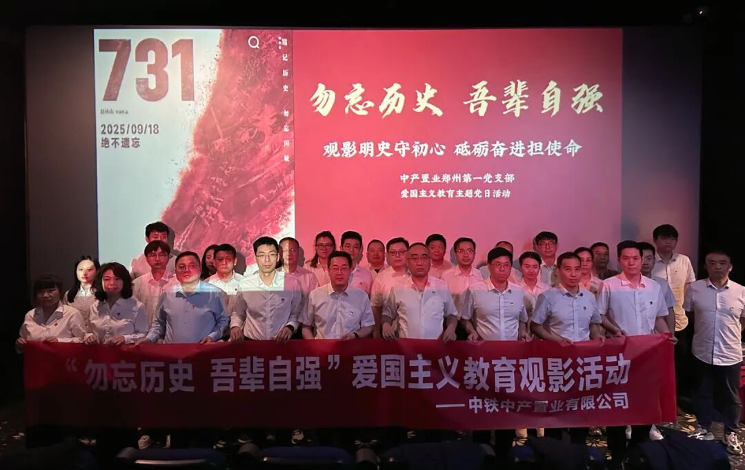 為深入傳承愛國主義精神,銘記歷史、進(jìn)一步增強(qiáng)民族責(zé)任感與凝聚力,9月19日,中鐵中產(chǎn)置業(yè)公司黨委組織鄭州地區(qū)黨員開展“勿忘歷史 吾輩自強(qiáng)”愛國主義教育觀影活動,集體觀看愛國主義題材電影《731》,激發(fā)黨員奮進(jìn)力量。
