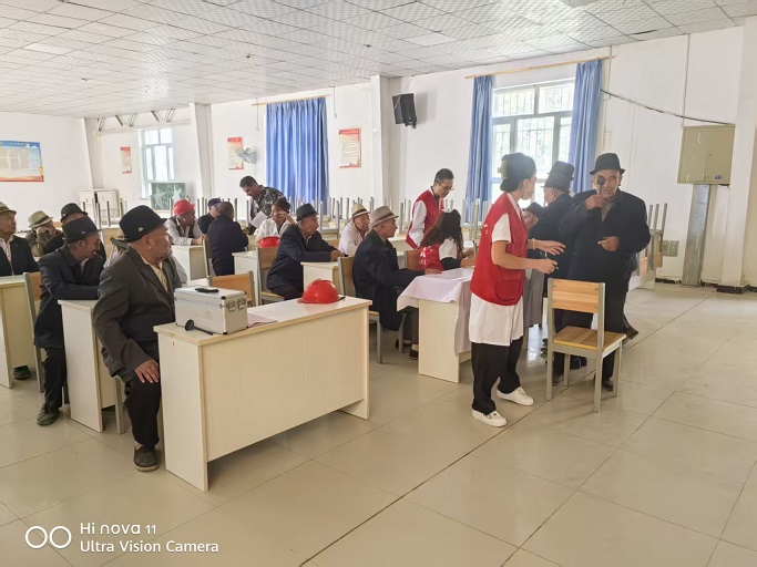 義診當天,天還未完全亮,阿滿眼科醫(yī)院的醫(yī)療團隊便早早抵達活動現場。他們迅速分工協(xié)作,有條不紊地搭建起臨時診療區(qū)域,擺放好視力表、眼壓儀、眼底鏡等專業(yè)設備。盡管現場條件相對簡陋,但醫(yī)療專家們始終熱情飽滿,以嚴謹細致的專業(yè)態(tài)度投入到診療工作中?;顒娱_始后,前來咨詢、檢查的村民絡繹不絕,從白發(fā)蒼蒼的老人到活潑可愛的孩童,大家都有序排隊等候。為保障現場秩序,依納克村工作隊隊員主動上前協(xié)助,一邊引導村民排隊,一邊幫助專家完成信息登記、病史詢問等前期工作,讓診療流程更加高效順暢。