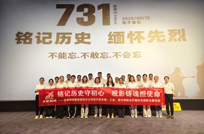 銘記歷史,緬懷先烈。9月26日,北新路橋集團(tuán)西安分公司機(jī)關(guān)黨支部、工會(huì)小組、團(tuán)支部聯(lián)合開展“銘記歷史守初心 觀影鑄魂擔(dān)使命”主題觀影活動(dòng),集中觀看重大革命歷史題材電影《731》。