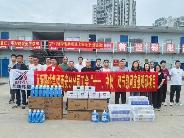金秋送爽,丹桂飄香,“國慶、中秋”雙節(jié)來臨前夕,北新路橋集團西安分公司宜景觀邸項目工會小組精心組織開展雙節(jié)慰問活動,向堅守在施工一線的全體職工及默默支持的家屬們傳遞關懷與溫暖。