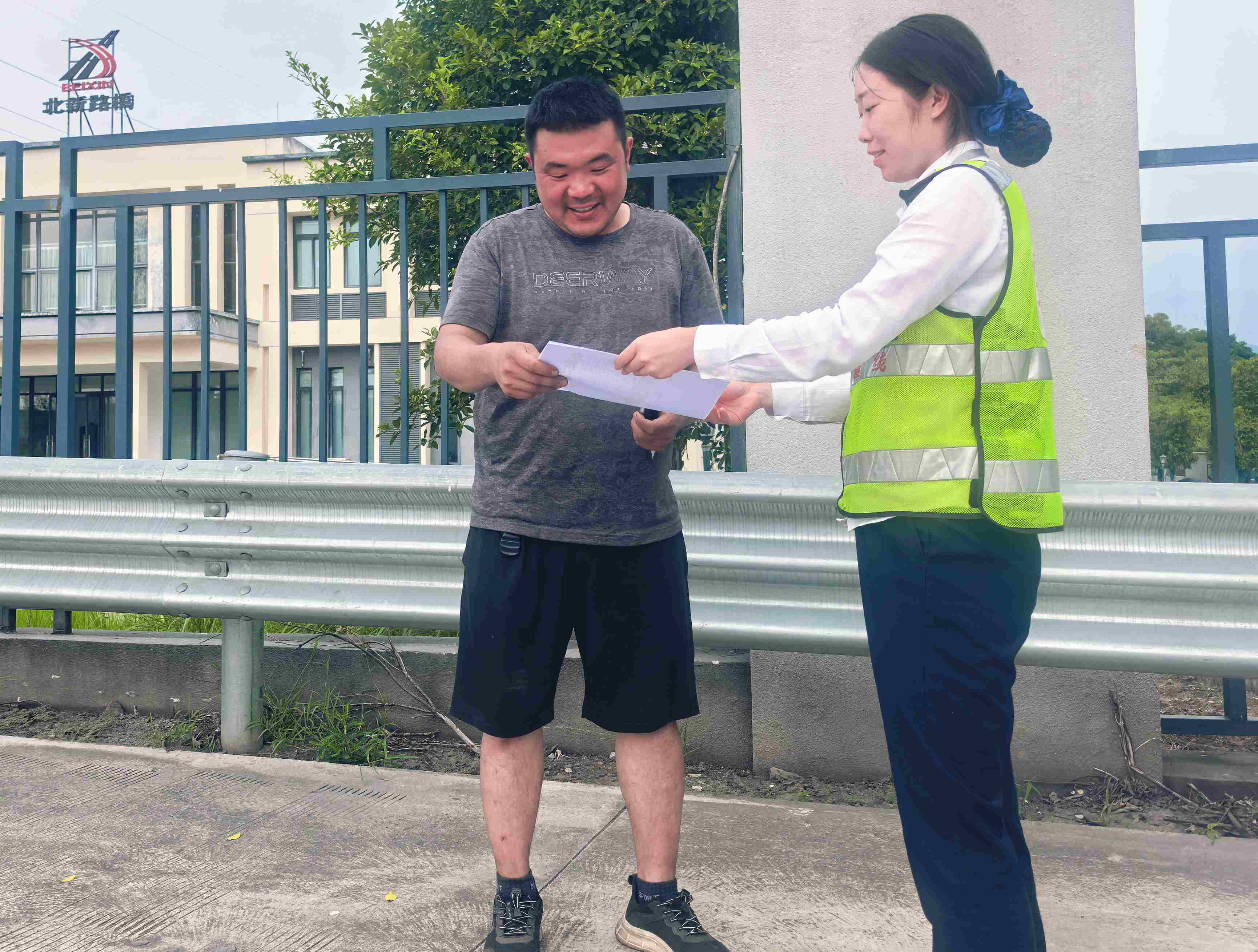 9月2日,一輛小型轎車下道后停留在渝長復線高速八顆收費站出口廣場有一段時間沒有移動。這一異常情況被收費班長藍心佚發(fā)現(xiàn)后,她立刻快步上前,主動向車內司機詢問情況。當?shù)弥緳C是接到公司電話急需復印一份資料時,她向司機要了資料后立刻轉身朝著收費站辦公樓的方向快步跑去。片刻之后,她抱著復印好的資料匆匆返回說道:“這是給您復印的資料,請您拿好。”聽到這番話,再看著手中的復印資料,司機緊緊握住藍心佚的手,語氣里滿是感激,連聲道謝:“本來以為今天在高速路口不方便,真沒想到你們能幫我復印資料,太貼心了!” 簡單的話語,滿是對收費站工作人員暖心服務的認可與感動。