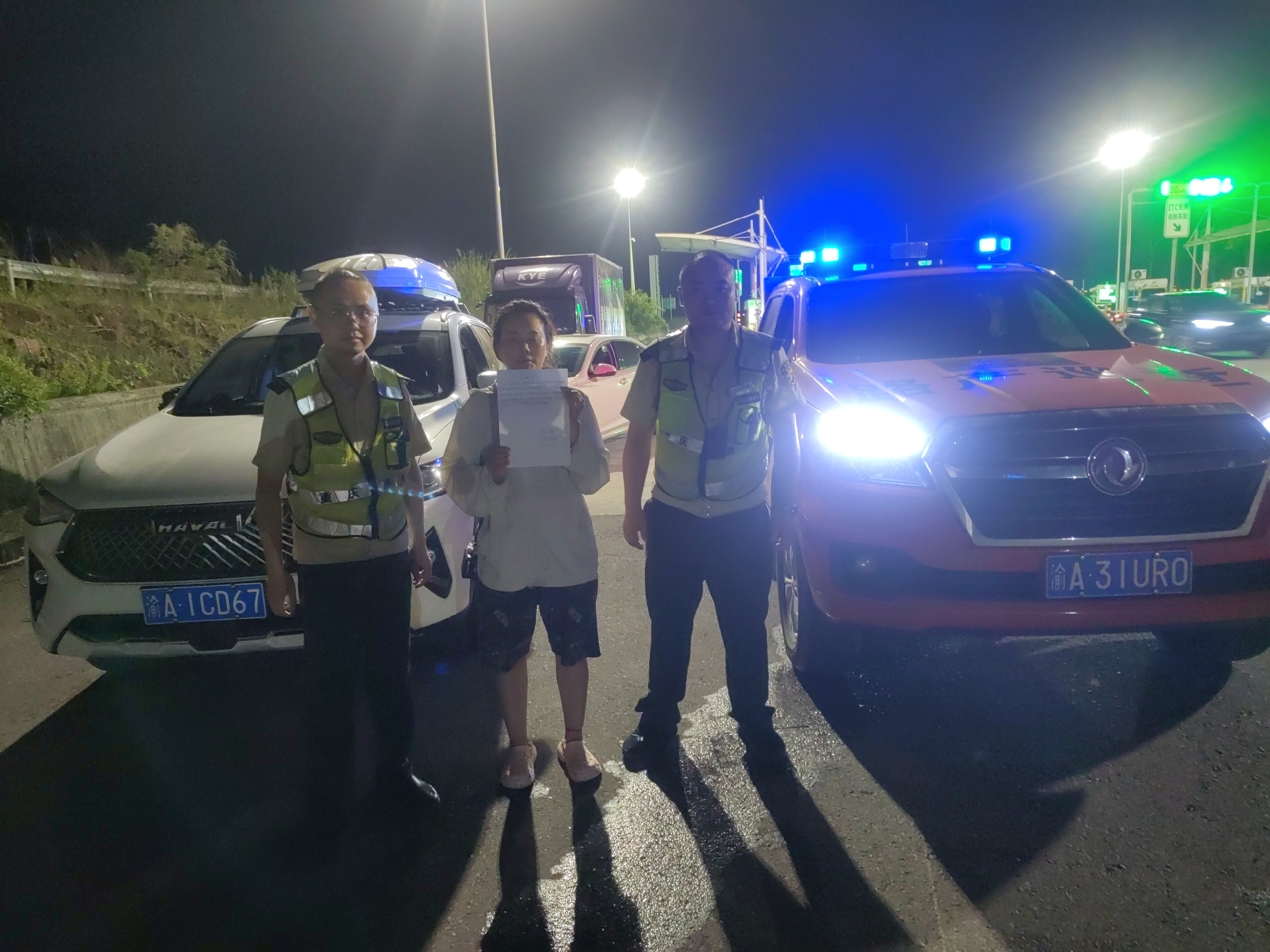 2025年10月5日19時25分,正值雙節(jié)期間車流高峰時段,渝長復(fù)線高速進城方向交通流量持續(xù)攀升。公司巡查人員鐘濤、陳鵬按照24小時巡查機制,在日常巡邏至 K33+400處時,發(fā)現(xiàn)超車道停放一輛小轎車,存在極大安全隱患。秉持“快速響應(yīng)、高效處置”的工作原則,兩人立即分工行動:陳鵬嚴格依照應(yīng)急處置規(guī)范,在現(xiàn)場設(shè)置警示標識、實施交通臨時管控,引導(dǎo)過往車輛有序避讓,筑牢安全防線;鐘濤則第一時間與車主溝通,同步聯(lián)系監(jiān)控中心協(xié)調(diào)拖車救援,確保處置流程規(guī)范高效。?