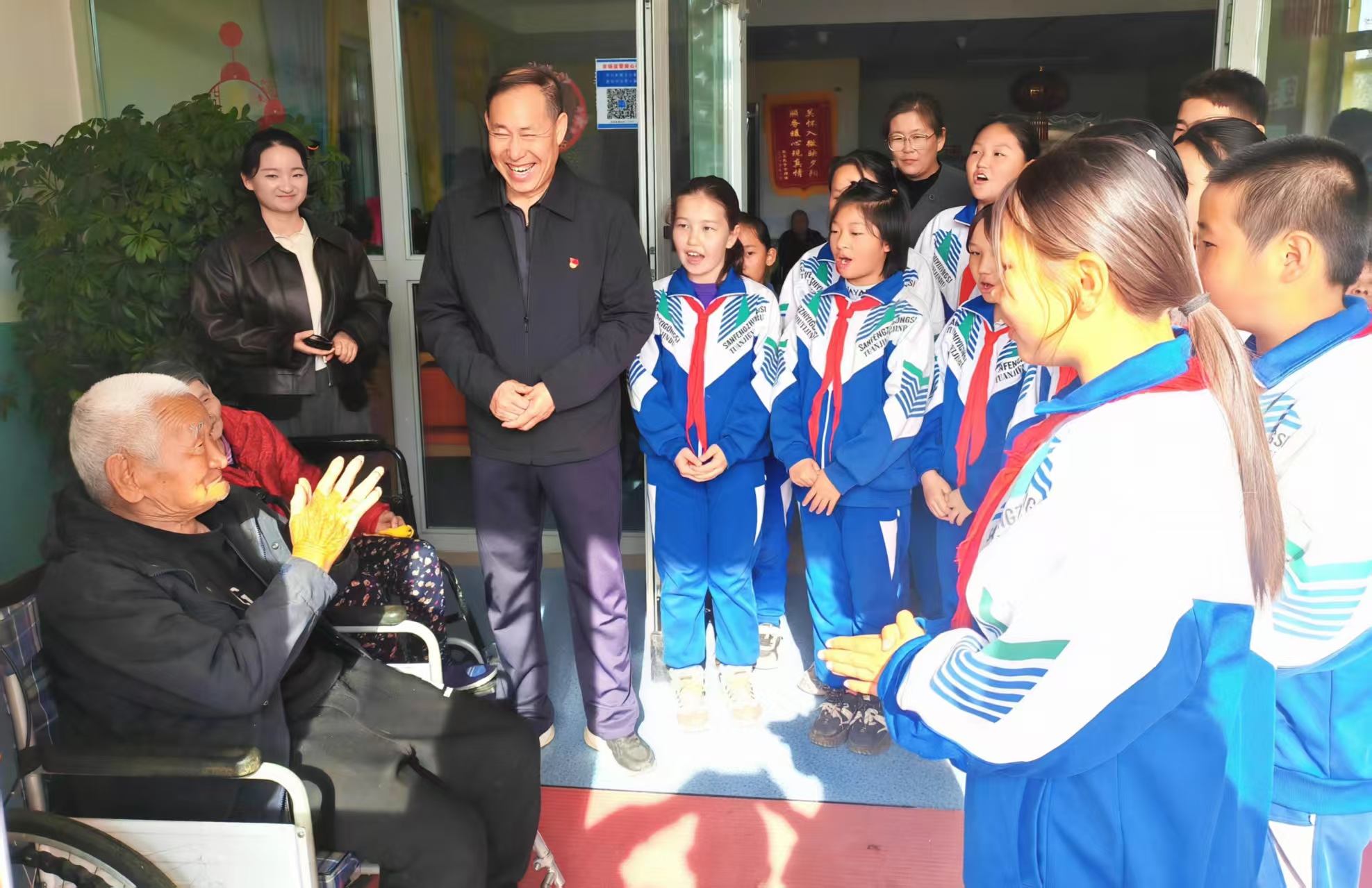 奇臺訊:(通訊員 王學(xué)明 報(bào)道)10月22日,在“重陽節(jié)”前夕,奇臺三十里大墩學(xué)校的少先隊(duì)員們,胸前戴著鮮紅的紅領(lǐng)巾,在該校領(lǐng)導(dǎo)、教師與第六師奇臺農(nóng)場110社區(qū)吾家樂寶養(yǎng)老院院長史云智的陪同下,攜帶慰問品,高高興興地走進(jìn)該養(yǎng)老院,結(jié)合目前正在開展的“敬老月”活動,以“黨建引領(lǐng)聚合力,少先大隊(duì)踐德育,共筑敬老愛老好氛圍”為主題,認(rèn)真開展了“重陽節(jié)”前慰問活動。