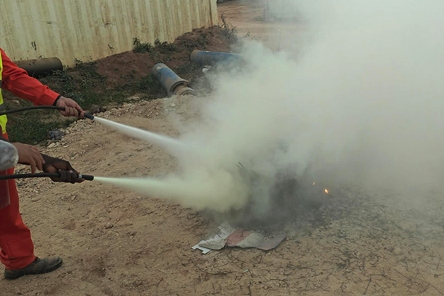 安哥拉地處非洲南部氣候干燥,植被易燃,火災(zāi)風(fēng)險(xiǎn)較高。松貝項(xiàng)目緊密結(jié)合當(dāng)?shù)貧夂蛱攸c(diǎn)與施工實(shí)際,精心制定演練方案,將理論培訓(xùn)與實(shí)戰(zhàn)操練有機(jī)融合。在培訓(xùn)環(huán)節(jié),安全負(fù)責(zé)人系統(tǒng)講解了施工區(qū)域火災(zāi)風(fēng)險(xiǎn)識別、初期火災(zāi)撲救方法、消防器材規(guī)范使用等內(nèi)容,并重點(diǎn)解讀了項(xiàng)目應(yīng)急預(yù)案中的報(bào)警響應(yīng)、人員疏散、協(xié)同救援等關(guān)鍵流程。通過真實(shí)案例復(fù)盤,直觀展示了火災(zāi)事故的嚴(yán)重危害,進(jìn)一步強(qiáng)化了全員“隱患零容忍、防控?zé)o死角”的安全意識。
